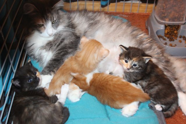 vervangen door schone exemplaren, de kittens waren allevier aan het drinken en