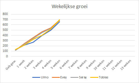 11 weken vandaag en ze blijven maar groeien. Tobias is met stip de zwaarste