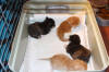Ik ben nog niet helemaal zeker van de geslachten en de kleuren, maar daar ga ik morgenochtend, als ze allemaal droog zijn, nog een keer naar kijken. Ik weet wel zeker dat ze allemaal een vachtpatroon hebben maar of het gestreept is, weet ik ook nog niet zeker.